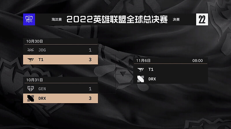 按照赛程规划,DRX将在11月6日与T1进行最终的冠军争夺战,赛程如下(北京时间):